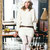 - Un pull blanc col V, coupe princesse et manches 3/4 (Pull Kiel)